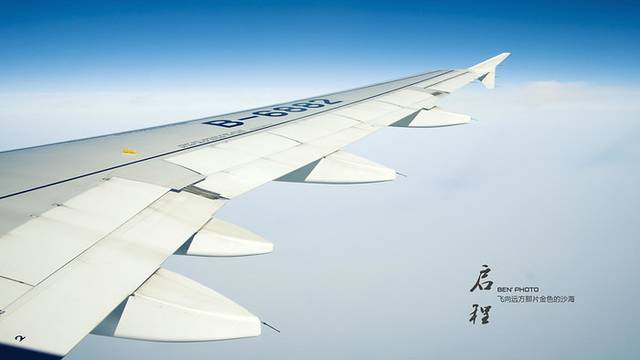 一上飞机,我倒头就睡,似乎一点没有出行的兴奋,就连空乘小姐两次送饮料,都没有把我吵醒。直到觉得肚子饿了,才渐渐有点清醒了。窗外,巨大的机翼背后,一抹蔚蓝猛的射入我的双眼,让我慌忙避开视线。