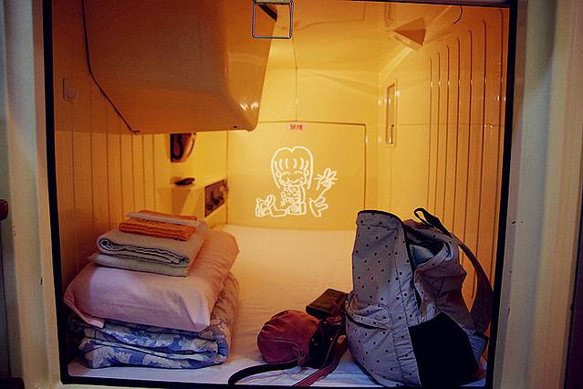 这样每一个小格子都住着一个人,外面的柜子也是对应小格子的号码,漫画书可以随便看。洗漱的地方东西方便到比宾馆还全。总之感觉睡在胶囊里比任何地方都舒服。