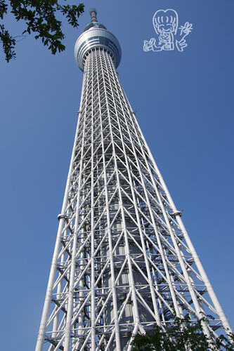 到时间后去天空树!比东京塔高了两倍多,导致一到大风天上面就要闭锁。电梯里的这个图案会随季节变化,冬天的话是雪花。