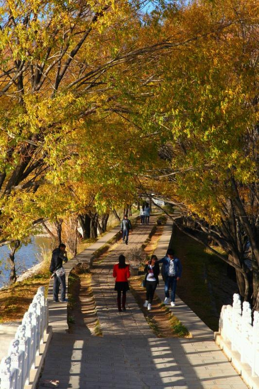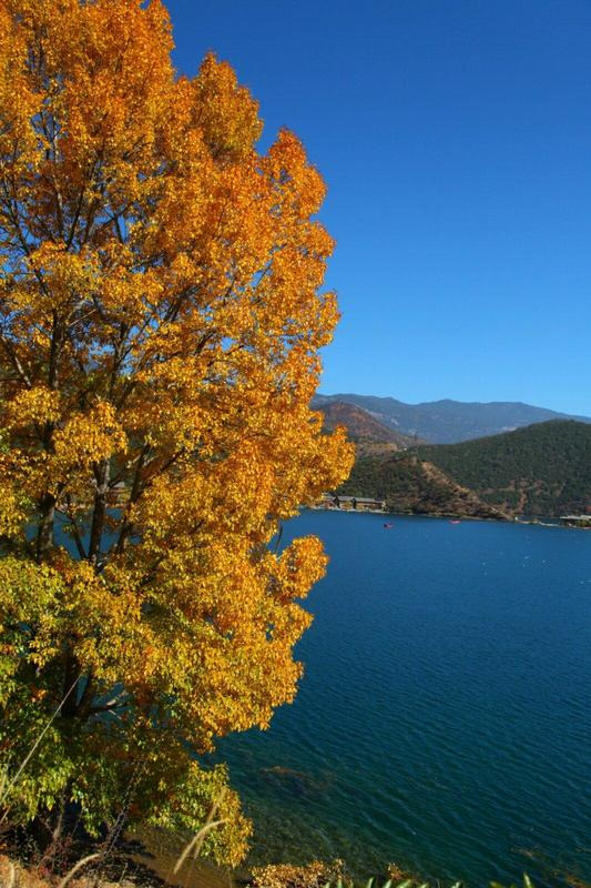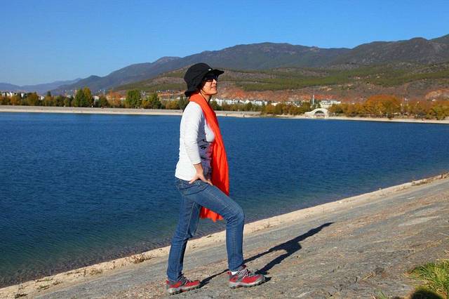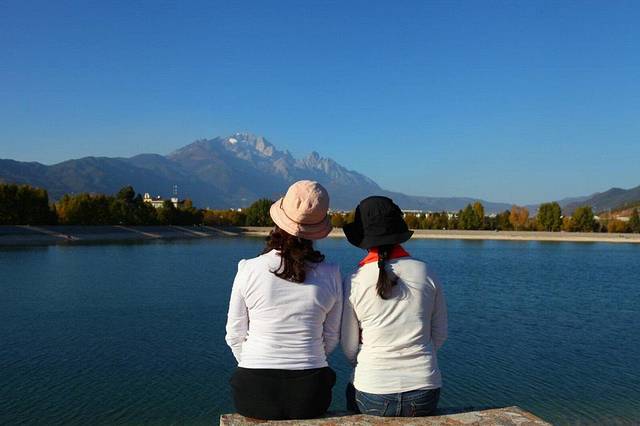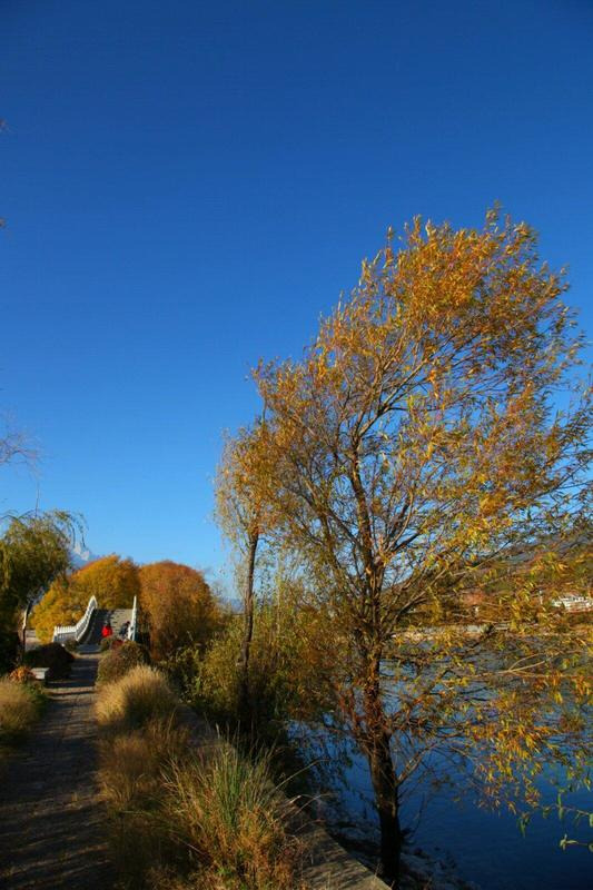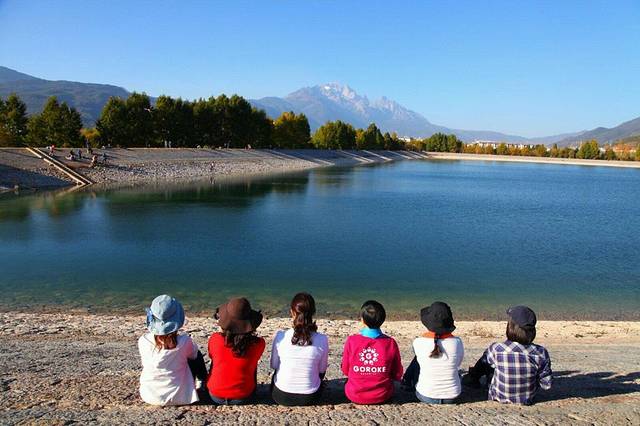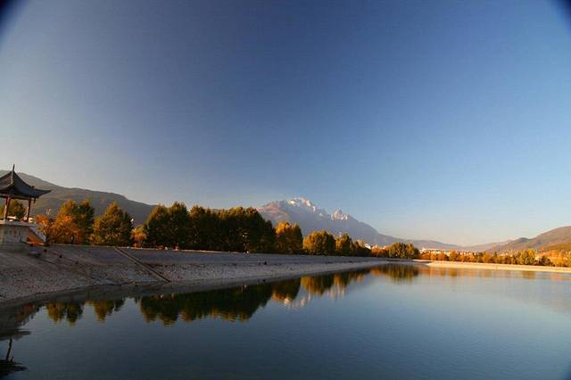 远处是玉龙雪山,可惜山上积雪太少,水中倒影几乎看不见。