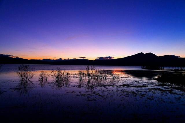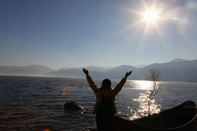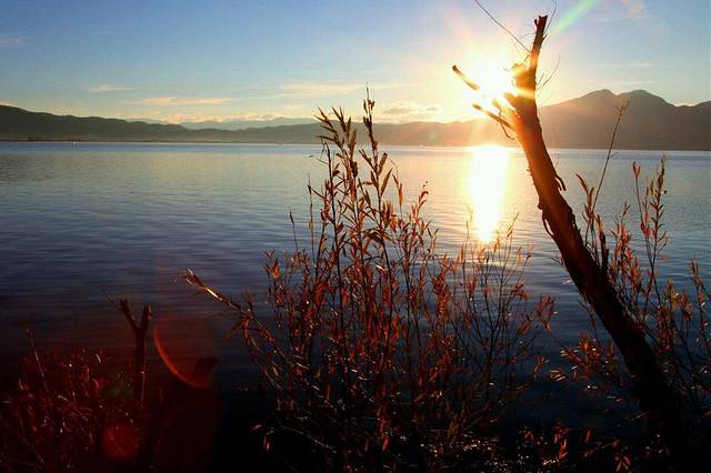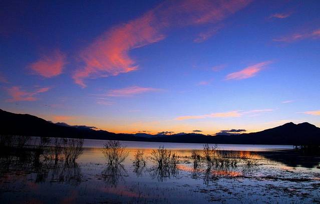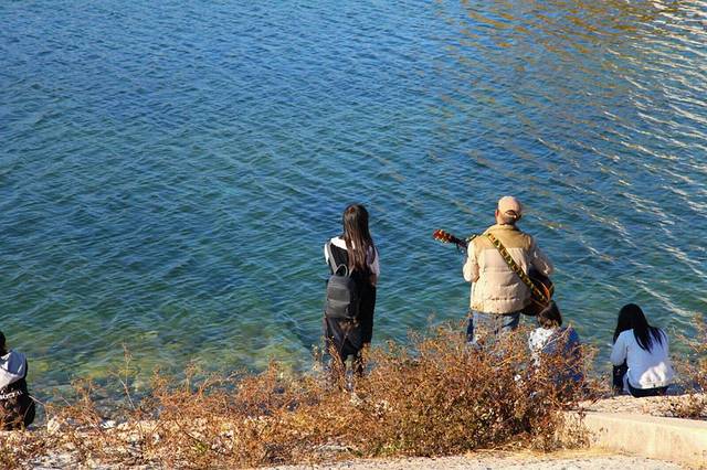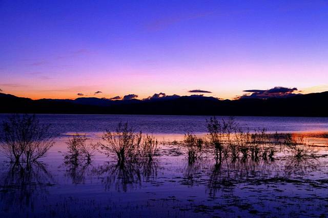 11月20日晚一行6人冒着大雨奔向火车站,从南宁在火车上睡一晚到达昆明,紧接着搭乘从昆明到丽江的飞机,下午3点到达三义机场,一下飞机就见到当地云行户外俱乐部的老朋友杨师傅,大家没来得及寒暄,即直奔主题:与云行户外俱乐部沟通这6天的行程安排。因为都是摄影爱好者,我们决定来个深度游,不做硬性安排,随风景、随心情决定行程,这就是自助游的最大好处。到达丽江当天下午,未做片刻休息,我们就准备去拉市海看日落,杨师傅称时间还早,就将我们带到丽江市北郊的清溪水库,水库的水清澈见底,颜色由浅至深递进,干净得宛如一面镜子,如此美景一下子就将我们吸引,在那拍完景拍人,半天迈不开步子,以致我们赶到拉市海时夜幕已降临,只拍到夕阳的剪影。