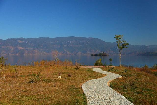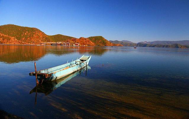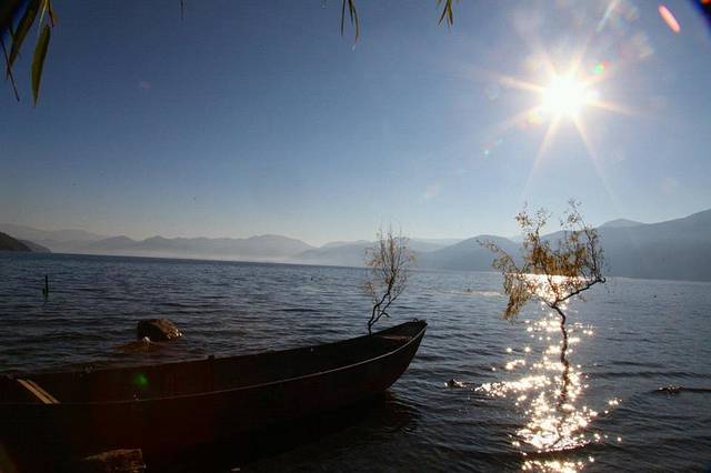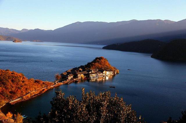 里格半岛是泸沽湖北缘海湾内一个美丽的海堤连岛,海岛三面环水,是个内港,左右青山环抱,傍立格姆女神,由于湖水是女神的泪水,故深邃尉蓝。湖面碧波如镜,天空与山峰清晰地倒影水中,把湖山天影融为晶莹的一体。正因为如此,里格半岛的住宿也是岛上最贵的。