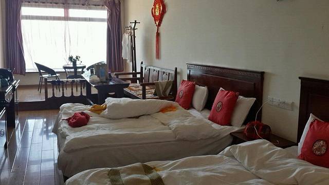 我们住的湖景房,一人一张一米八的大床,一个字爽,二个字舒服