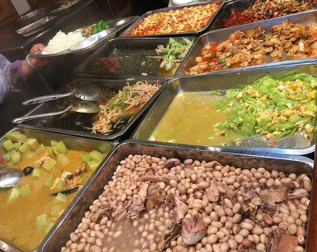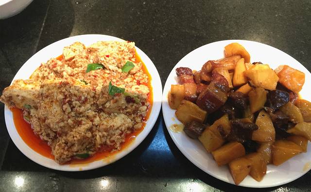 安置好行李,简单休息片刻后,朋友带我们来红烟宾馆对面的还有一餐厅吃饭,朋友说红河卷烟厂里面有很多餐厅,有红烟一餐厅、红烟二餐厅、回族餐厅、红烟宾馆餐厅,还有一个烧烤吧。红烟一餐厅售卖面点、烤点,卤制品、炸制品、蒸菜、烩菜、炒菜,朋友说这里的包子、饺子、馒头、花卷、各类糕点都是很好吃的,回程的时候可以带些回去。卤菜之类的也很不错,干净卫生。朋友给我们买了套餐,可以自己选菜肴,有两荤两素,8元/套,朋友还买了一些卤制品,卤大肠和叉烧肉,售卖的人员都是切好,并配好蘸水,味道真的很不错,服务态度也很给力。