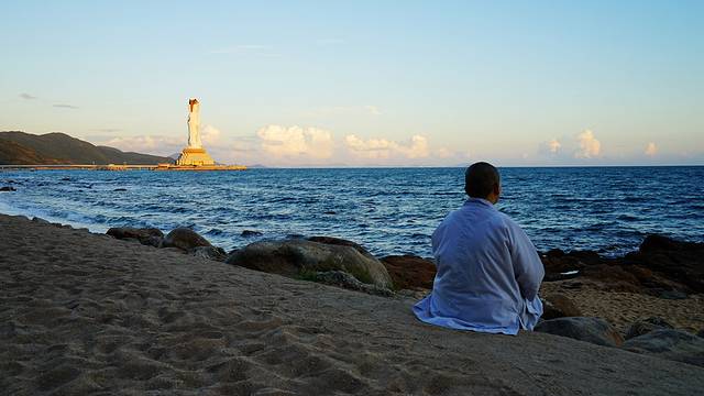 还没有走到海边,远远就能看到这座雄伟庄严的南山观音像,不用管南海观音到底是应该在普陀山还是海南,这些都无所谓,只要心中有观音,又何处不是南海呢?