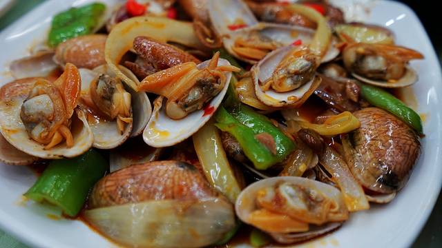 辣炒芒果螺也是值得推荐的一道菜,芒果螺其实就是花蛤,海南的芒果螺味道特别好,辣炒入味以后更是鲜美可口。