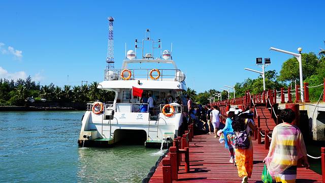 三亚有很多离岛,开放的只有蜈支洲岛和西岛,景色都美极了,完全不是三亚的几个海湾能比的。蜈支洲岛因为拍了非2,名气很大,但这里正因为名气大了,价格也特别高,而且位置在海棠湾,离市区特别远。所以要看美丽海景,痛快的玩海上项目,还是推荐三亚湾的西岛。西岛离市区近,景色比起蜈支洲岛绝不逊色,而且这里的消费要比蜈支洲岛低得多。去西岛要在肖旗港坐船,和南山、大小洞天一个方向,但要比他们近得多,距市区也就十几公里,坐16路到肖旗湾站下车即可,一个小时就能到。西岛很狡猾,门票只要20元(淡季16),但是大家总不能游泳过去,所以船票+基金128元(不分淡旺季),就算能免门票,也和不免差不多,还是推荐网上购票,门票+船票才118元,比免门票还便宜10块。