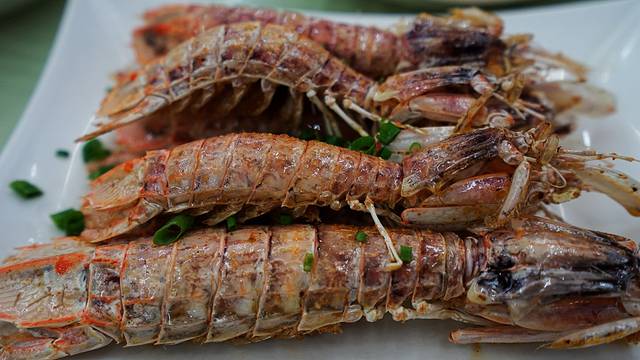 椒盐皮皮虾也是我们的最爱,在上海的时候就是每周都要吃一次的美味,即使是很小的皮皮虾,要是椒盐口味做得好,也特别好吃,恨不得连皮都吃下去。海南的皮皮虾特别肥美,建议大家就算多花点钱,也一定要点这种个头大的皮皮虾,两个人6个左右就足够了。