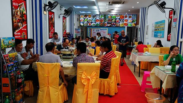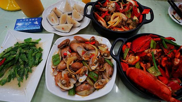 春园海鲜市场对面就是我们住的如家,楼下就是网上大家都推荐的海鲜店,非常方便。这里的海鲜都是早上买来的鲜活海鲜,现点现做,晚上就是去市场买海鲜加工,新鲜的也不多,基本都卖光了,所以还是在这里吃比较合适。