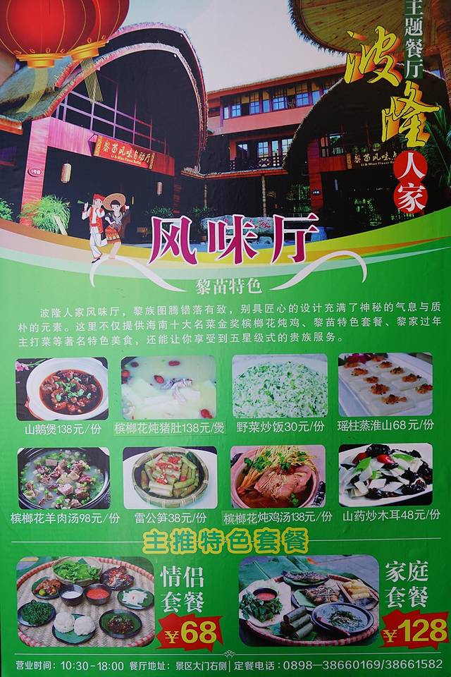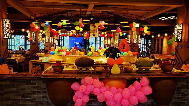 景区门口有家叫“波隆人家”的主题餐厅,这里推出的情侣套餐自助餐,两个人68元,虽然口味一般,但是量很足,就餐环境也不错。