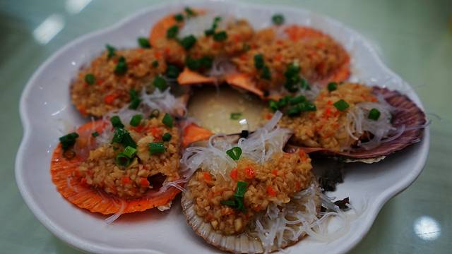 粉丝蒜茸蒸扇贝,这个是配菜,主要用来凑数,但确实又实惠又好吃。