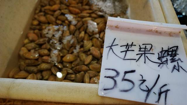 一般的摊位尤其是贵重的海鲜都没有标明价格,需要去询价和侃价。但我发现了这个卖贝类的摊位有标价,拍下来给大家看看,可以参考一下三亚的海鲜市场和你家楼下的超市在价格上有多大的差别。人家可都是明码标价,按斤卖的,可不是按个卖的哦。