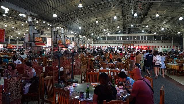 三亚有几个这样的海鲜市场,例如著名的第一市场、春园和友谊路。这三个地方我都去过,春园和友谊路很像是大排档,没有店名,只有几排几号,所以没有特色,购买海鲜的价格也略贵。而第一市场在网上好评最多,这里海鲜的品种最齐全,价格也最低,由于做得最早,市场旁边的一条街都是海鲜加工店,形成规模,每家都有自己的店名和特色招牌菜,所以慕名前来这里的网友特别多,人气最旺。