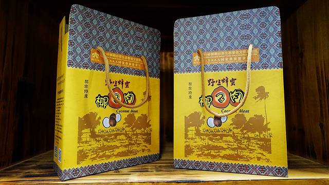 在这里也看到了很多土特产品,虽然是老字号"南国"的品牌,但却是“槟榔谷”的定制包装,非常精美,别处确实买不到,但是这价格嘛却是贵了不少。