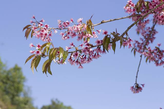樱花谷的是野樱,跟日本樱的区别是花开的没那么密,没那么大。