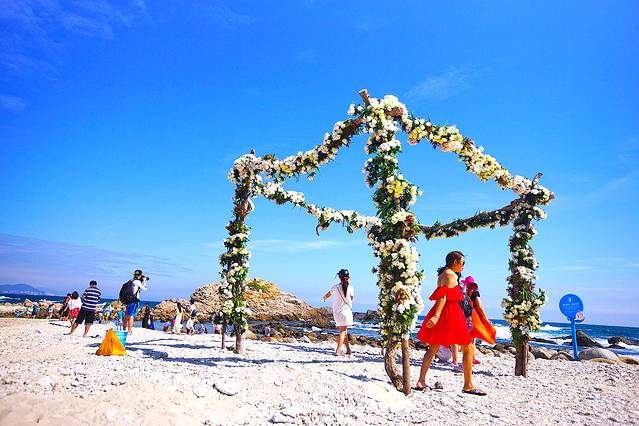 完事儿先去大东海边玩耍,偶遇一片三角梅墙,速速来张小清新照,哈哈哈,这是个什么鬼姿势~