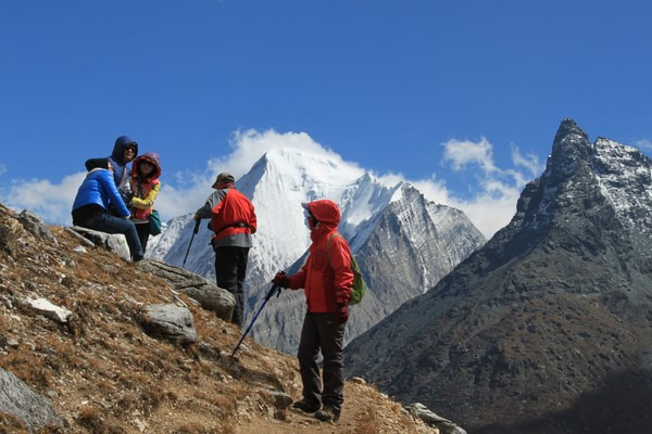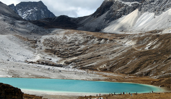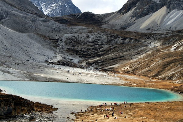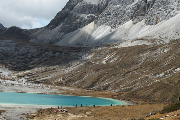 0630搭便车前往龙同坝。为节省体力,我们决定坐电瓶车从龙同坝至扎灌崩,后来的事实证明这是个错误。电瓶车0700开始售票,而我们将近8点才买到车票,而且只售往返程,接下来是继续排队等车,等我们坐车到扎灌崩已近9点。等我们再转冲古寺至洛绒牛场的电瓶车,到达洛绒牛场已经近10点钟。上午是观赏央迈勇的最佳时间,所以我们抓紧时间在洛绒牛场拍照、休息,大约1030分开始向牛奶海、五色海进发。从洛绒牛场至牛奶海、五色海全程耗时约4小时(上山2.5小时、下山1.5小时)。P.S.从洛绒牛场至牛奶海三分之二路段有段路特别难走,但只要咬牙坚持走完这段路,后面的路要好走得多。1830离开龙同坝,返回稻城 ,考虑到达稻城 时间较晚,我们决定在里瓦吃晚餐,七个人,花费150元。目前亚丁 至稻城 多处路段修路,我们达到稻城 时已经2230。