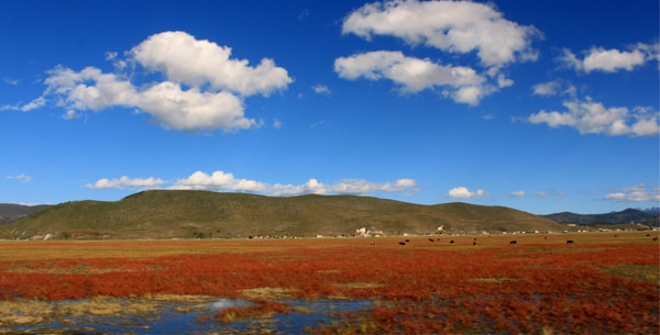 走出普达措 公园大约1530分,我们拼车的四人协商后决定前往纳帕海 -伊拉草原。根据驴友的攻略和客栈老板的建议,选择不进纳帕海 -伊拉草原景区,而是沿着环湖路驾车游览。环湖路上的红草地、草甸、狼毒花、湖泊等景色让我们欣喜不已。个人觉得纳帕海 -伊拉草原是香格里拉 的超值景点之一。P.S.如果你有一整天的时间游览纳帕海 -伊拉草原,可以选择租自行车游览;但如果只有半天时间,建议包车游览。