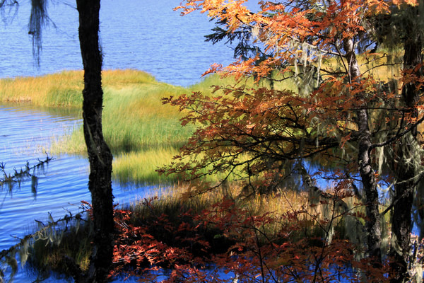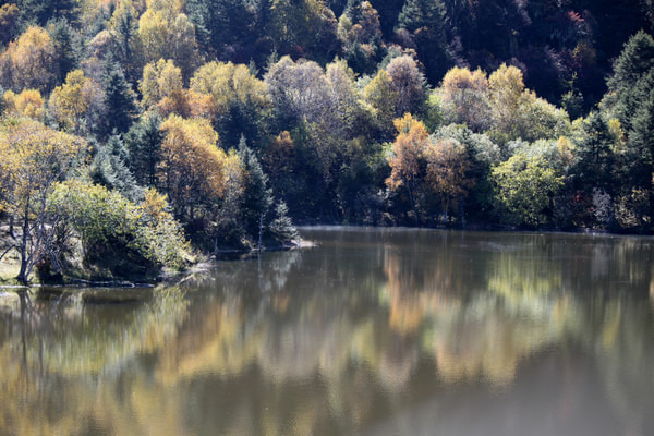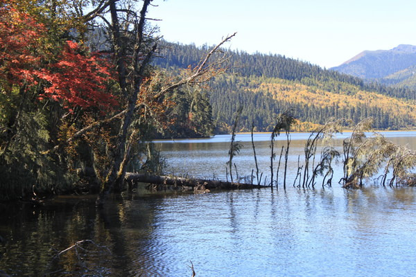 早0800在客栈拼车去普达措 ,没有提前找人拼车。等到九点多才找到人一起。根据客栈老板阿坤的意见,在经过香格里拉客运站时,顺便购买了第二天香格里拉至稻城的车票。由于时间耽误,我们最终到达第一个景点属都湖时,已经近十点,神秘而美丽的属都晨雾即将消散。虽然未能充分领略属都晨雾的美丽,但秋日的属都湖仍没让我们失望,湛蓝的湖水、绚丽的秋叶充分展示着高原湖泊的美丽秋色。属都湖全程走栈道,耗时大约1.5小时。普达措 第二个景点是弥里塘,弥里塘是一个高山草甸,很多当地牧民在此放养牛羊马匹。由于只是安排在观景点远眺,而不是在草甸漫步,匆匆几分钟便可结束弥里塘的游览。我们达到碧塔海的时间大约是12点钟,由于时间尚早,我们仍选择全程徒步游览碧塔海,全程时间约为2.5小时。碧塔海虽然徒步时间较长,但全程栈道,路非常好走,而且一路景色不错,建议全程徒步。大约行程三分之一处有处芦苇海,在秋叶就湖水映衬下非常美丽。栈道的最后1.2公里正是碧塔海的精华所在,芦苇、草甸、湖水、蓝天构成一幅五彩画卷。