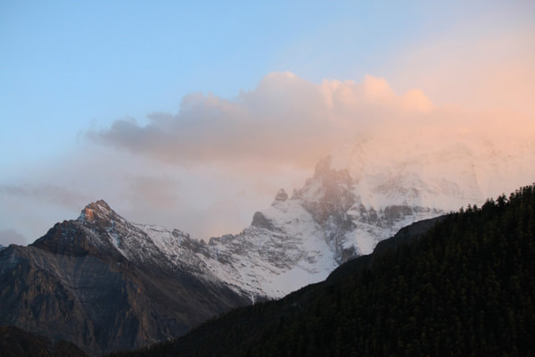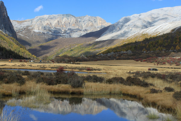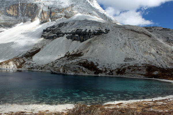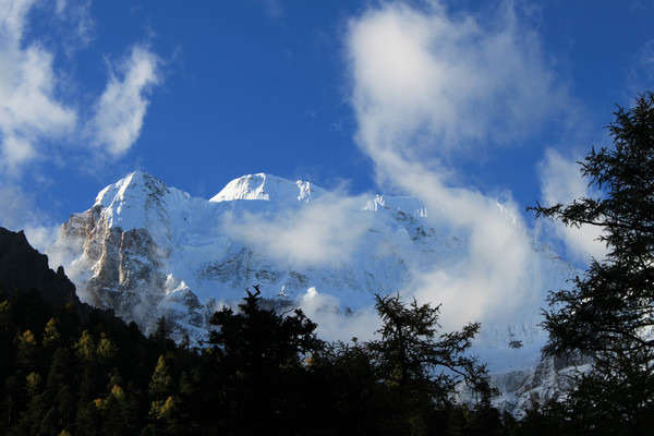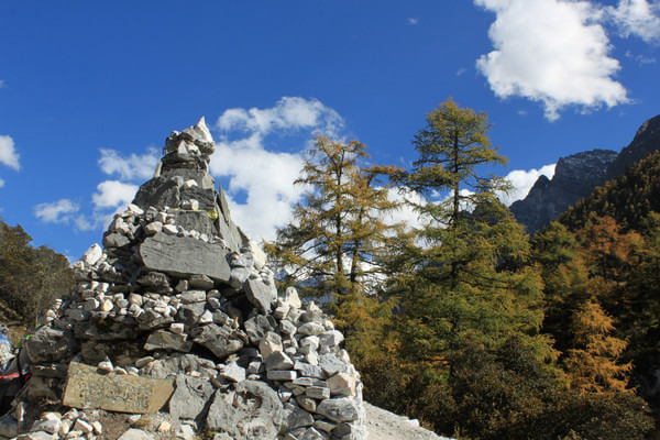 早0830拼车前往亚丁 ,司机旺堆。由于先前预定的两人临时改变行程,我们的车只剩三人。旺堆心有不甘,直至在稻城 找到一名前往日瓦的客人后才离开稻城 前往亚丁 。中途游览一喇嘛寺并在日瓦吃午饭。大约在1330分到达亚丁 村,入住“稻城 故事”亚丁店,帐篷。“稻城 故事”的最大不便是不提供亚丁村至龙同坝之间的车辆。我们只好请求旺堆把我们送至龙同坝,大约1430开始游览亚丁景区。选择徒步从龙同坝至冲古寺,耗时50分钟。冲古草坪能远眺夏诺多吉,近处溪流、草坪、远处雪山、蓝天、白云,景色极佳,是亚丁 景区的标志性景点之一。沿着冲古草坪拾级而上,走过一段圆木栈道,大约30分钟便能来打珍珠海 。珍珠海 是观赏仙乃日的最佳位置,受阳光影响,每天上午是观赏仙乃日的最佳时间。