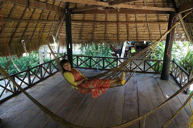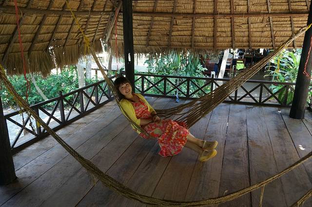 那里的人们很喜欢这样躺在吊床上,摇啊摇,仿佛就不热了。
