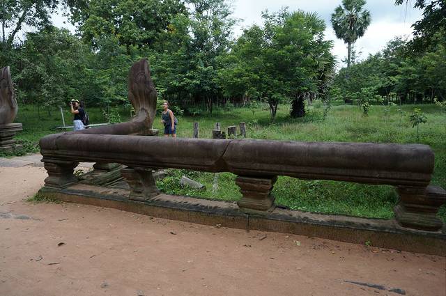 圣剑寺规模宏大,是阇耶跋摩为父亲而修建,供奉毗湿奴和湿婆。寺庙门口两边的众神和阿修罗展示的是搅动乳海的景象。