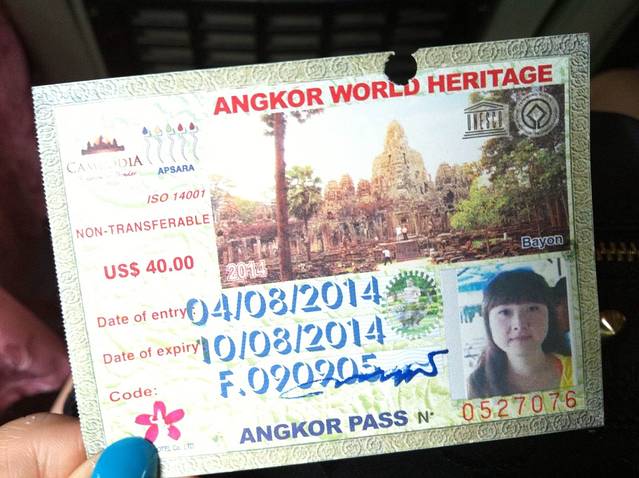 吴哥窟的门票分:一日票20美元;三日票40美元,可以连续三天或一周内任意三天参观;七日票60美元,可以选择连续七天或一个月内任意七天。而且当场会把照片拍下来印在门票上,以后每次进一个寺庙都要验票,所以要随身带。