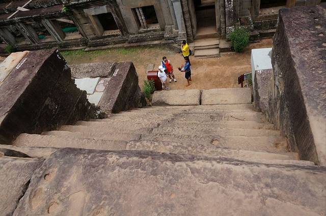 台阶很陡很高,到底怎么个陡法?谁爬谁知道!