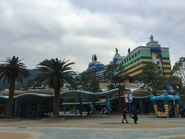 园区门口很显眼的是企鹅酒店和马戏酒店,外墙都是很Q的主题图案。