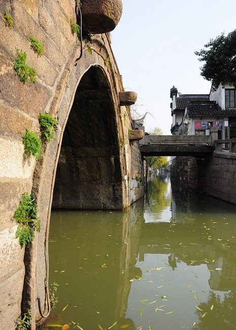 沿河的老房子,依水而筑。进深都很浅,早先都是住着人家的,那些老苏州,不知多少代人,就一直住在里面。现在因为平江路开发为旅游的景区,平江路两侧的居民都搬走了。这些老房子也重新修葺过,修旧如旧,租给商家们开店做生意。这些店面,有好几家都开了供游客享用西餐、休息的咖啡店。在里面,一边品尝着刚出锅的披萨,一边听着优雅的苏州评弹,想必真的是天堂一般的生活。