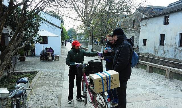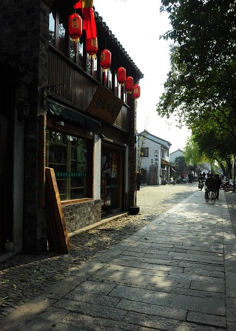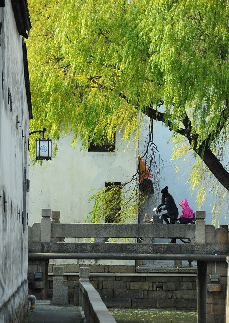 叮铃铃的,自行车铃想起,是住在附件的老苏州人早起买菜回来了,袋子里要不是当季的水果,要不就是新鲜的蔬菜、鱼肉什么的。