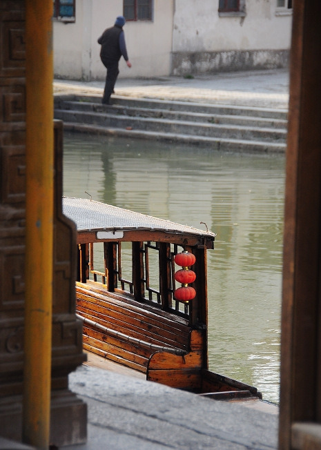 周末一大早的平江路,游人还很少,停泊在小河边的摇船静静的靠在岸边。河的对面,有老苏州人,直接在河道打水,想必是用去打扫卫生或者是清洗拖把。