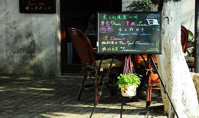 这样的景致和生活,是需要你停下脚步,静下心来,慢慢品味的。你可以单独一个人,也可约两三好友,在咖啡店旁边的小院子里,沏湖上等的碧螺春茶,或者冲上一杯咖啡,谈天说地,或者摊开最新的时尚杂志,读读那些八卦的新闻和故事。谈笑风生中,你在平江路古老优雅的气质里,回归真正的自己,静静的感受着这时的心灵,这时的世界。忙碌和繁杂尽去,只剩下难得的那份淡定,沉静和归真。小园深处听风雨,熟读古人三百诗。我相信很多人都会喜欢这样的景致。