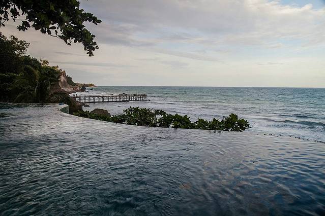 早晨的无边泳池