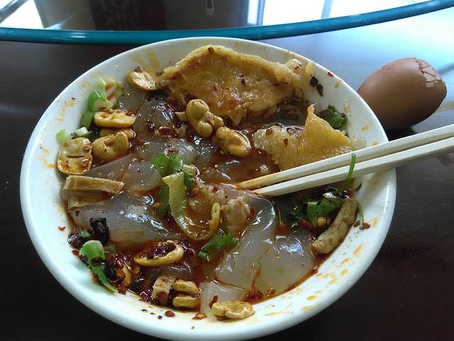 从悬空寺下来后,坐车先去吃饭,饭店名叫小媳妇凉粉,团餐很简单,每人2个馅饼和1碗凉粉,味道还可以,馅饼油有点大。呵呵,也是特色呢!