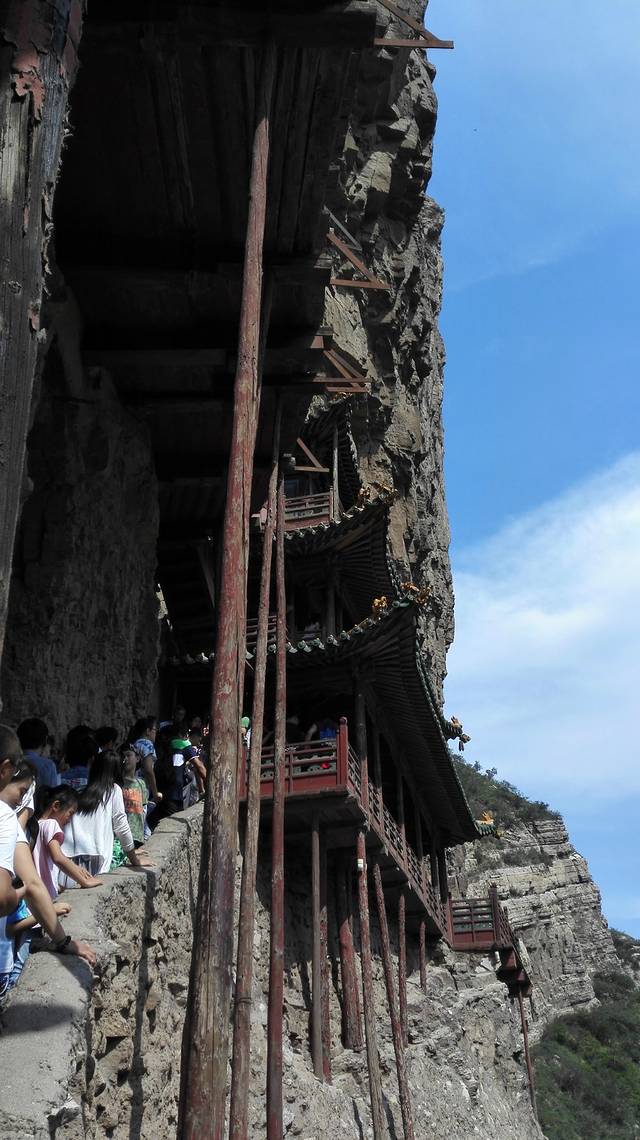 前一天在云冈石窟的时候,报名参加了第二天的悬空寺、恒山一日游!早上七点多,在交通银行门口上车出发,先到达悬空寺游玩,寺庙其实不大,依山而建,很有特色,上下楼梯很窄,看起来有点吓人,游人,几乎是排队前行,无法仔细欣赏,只能走马观花!