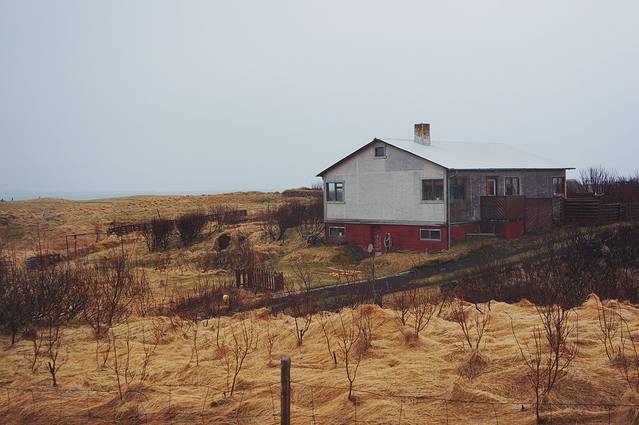 这幅画面里描绘了一座理应在黑夜中的房子,在房子之前有一个路灯,在房子前面的水面上倒映出清晰的影像。然而背景中,却是白昼的天空。这种强烈的反差会让你去思考,为什么会有这样的场景,这到底是梦幻还是现实?而房子的二楼有两个窗口亮着灯,我又会去想,在这样一个梦幻的场景里,窗子背后的房间内,到底在发生一些什么事情呢?