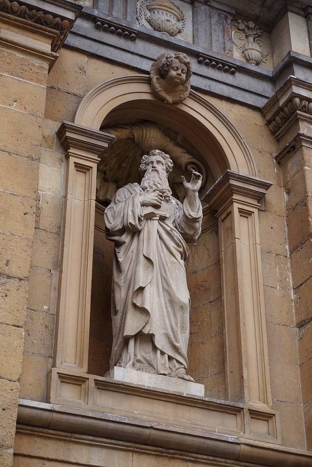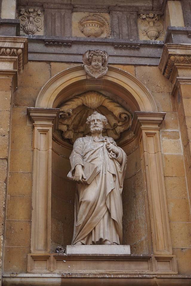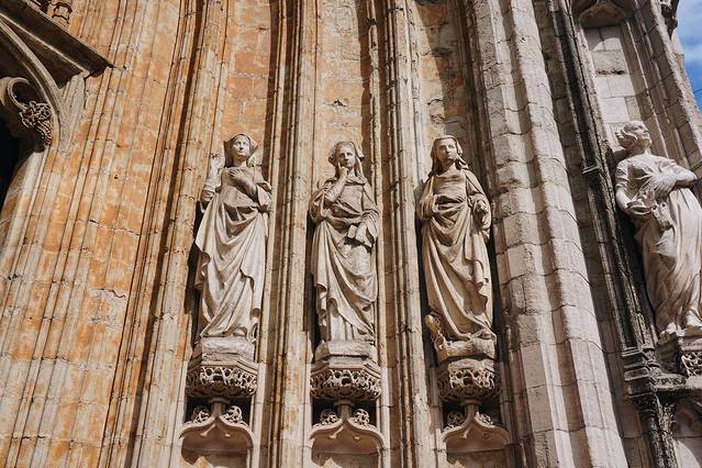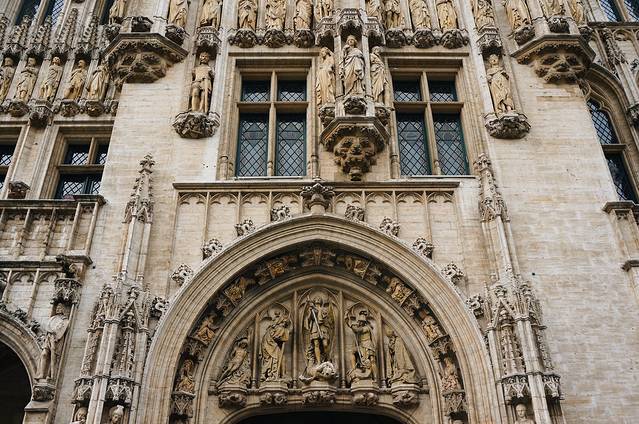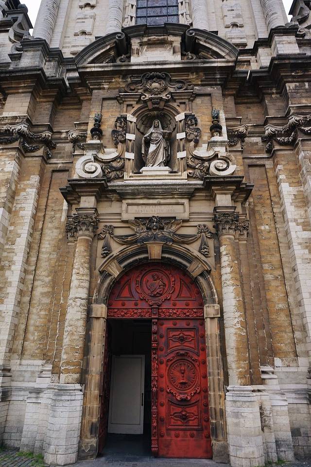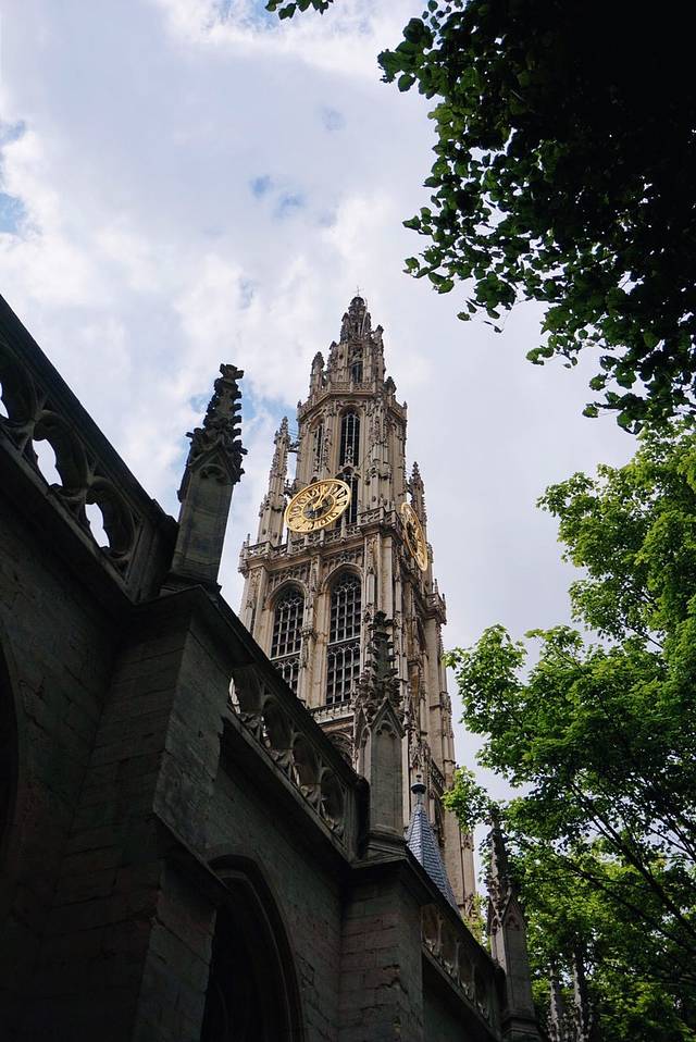 和在欧洲看到的其他哥特式教堂(比如巴黎圣母院、甚至布鲁塞尔的圣凯瑟琳教堂)不一样,大萨布隆圣母堂的正立面并没有一座高塔。可是和上面提到的歌特式教堂一样,教堂的正立面同样装饰华丽,大小雕像密密麻麻的装饰着正立面。