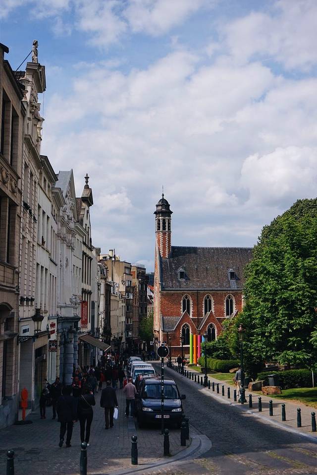 今日我们旅人游览布鲁塞尔的经典路线,就是从下城的大广场,往西边沿着艺术丘走到山坡上的皇宫和比利时皇家美术馆。现在看来,这一个轴线仿佛如此自然,将大广场、皇家教堂、一路下坡到大广场整体连结在一起,一气呵成,完全不用绕远路。