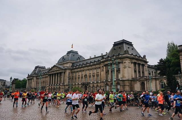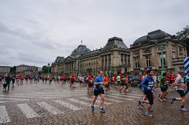 我刚走到皇宫面前,就看到呼啦啦、乌压压的一大群人跑过,真是好壮观。参加马拉松的,有看上去训练有素的专业选手,也有携家带口的夫妻,也有挺着啤酒肚的大叔们,让人感觉整个布鲁塞尔城的各式各样的人都来参加这个比赛了。