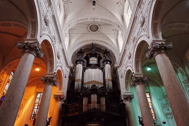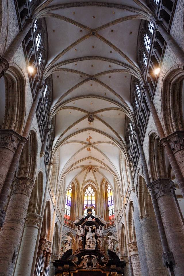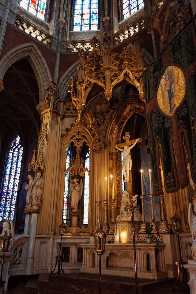 萨布隆圣母教堂十分精致、歌特式的飞扶壁与与尖拱窗做得十分利落,内部的彩绘玻璃窗也做到了让人惊叹的地步。