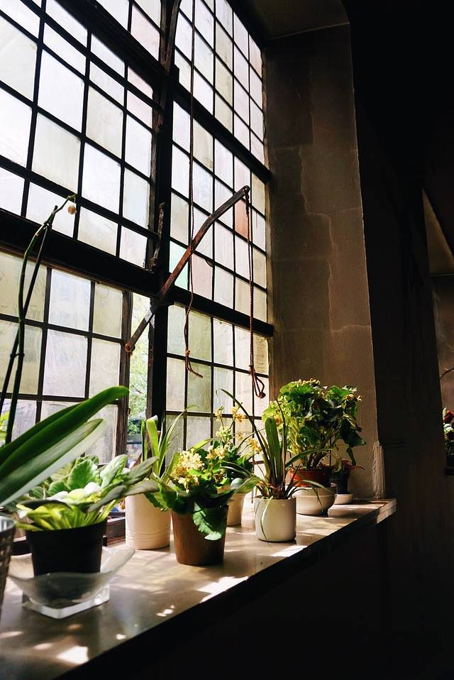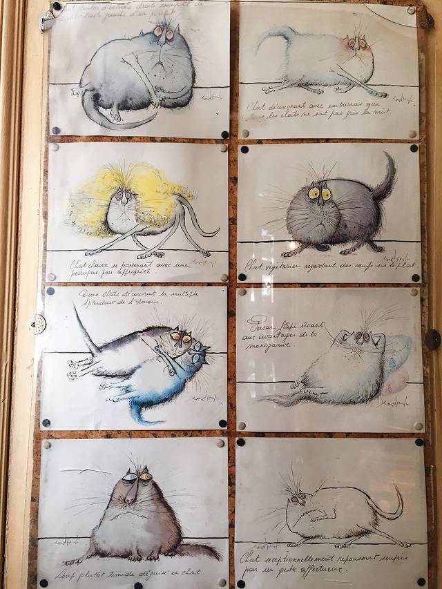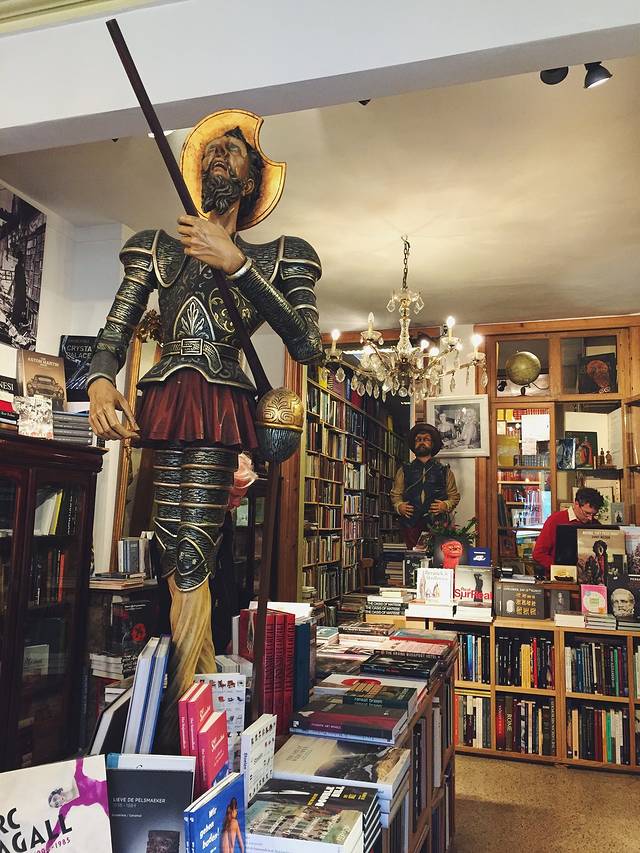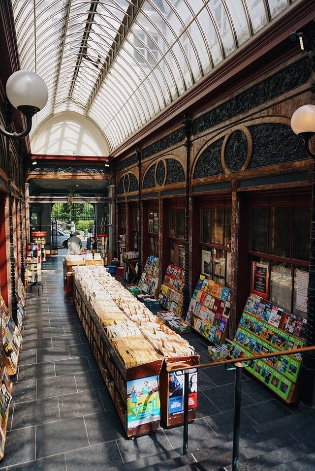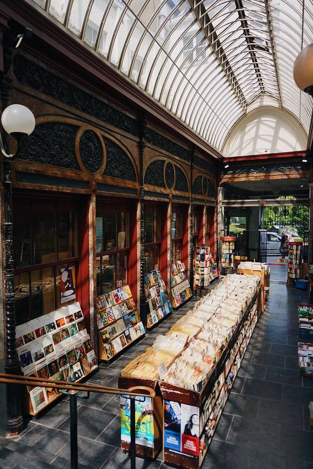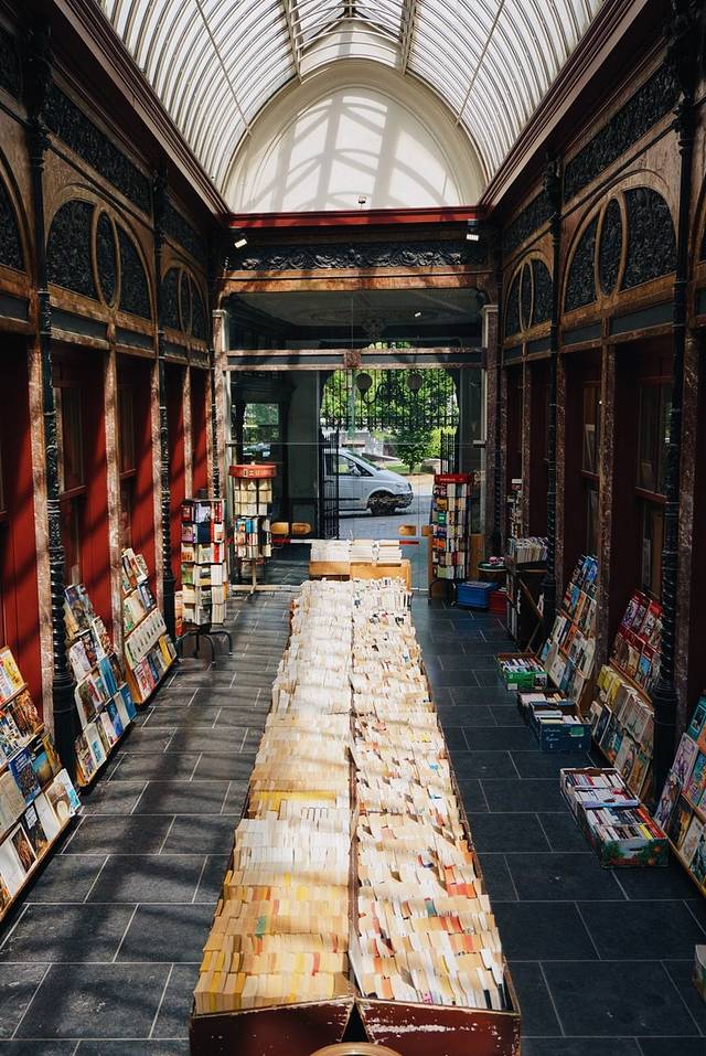 越往艺术丘走,就越能感到艺术的氛围渐浓,画廊和书店也多了起来。比如这个有着透明拱廊顶的室内书店,廊道里摆着许多等待出清的旧书,可惜都是法语的书,不然我也许会淘一本带回家呢。