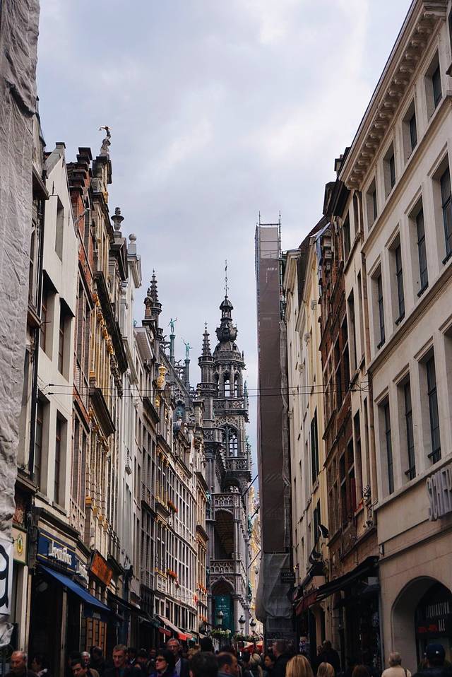 从皇家广场,顺着艺术丘往下望,大广场市政厅的高塔就在视野中心。确实,无论在布鲁塞尔城的哪里,都很难忽略这个“大家伙”。