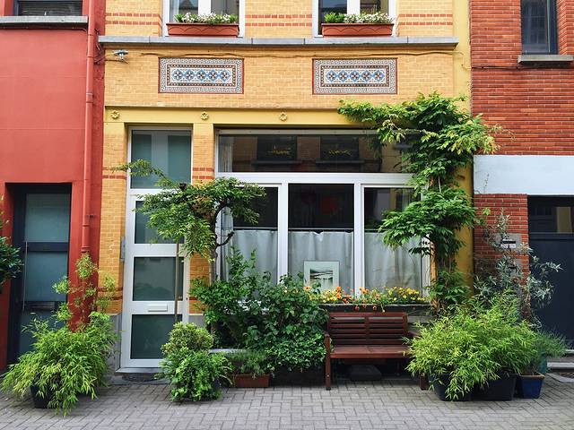 和萨布隆圣母教堂一街之隔的,是小萨布隆花园。花园的外墙是由48根铜柱组成,而每根铜柱上面,都有一座不同的雕塑,这48个不同的雕塑代表着中世纪48种不同的职业。