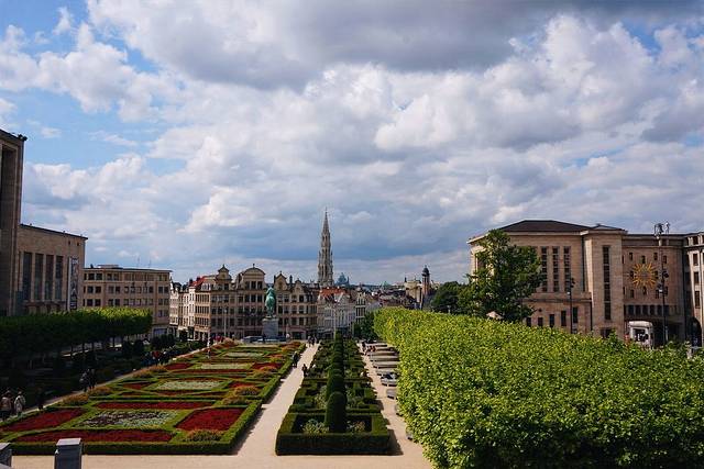 可是,在19世纪末时,这块山坡地可是密集混乱的住宅社区,上城与下城两大重要地标彼此完全没有联系。这时,比利时第二任国王 Leopold II 独具慧眼,盯上这块土地构想了这条轴线,大手笔把所有土地买下来、把所有杂乱房舍都拆除后,在 1910世界博览会前夕将此地整顿成一个山坡花园步道,让所有搭着电车从博览会场来到布鲁塞尔市中心的游客们,看着漂亮的老城天际线缓缓下坡,走进比利时首都的旧城中心。