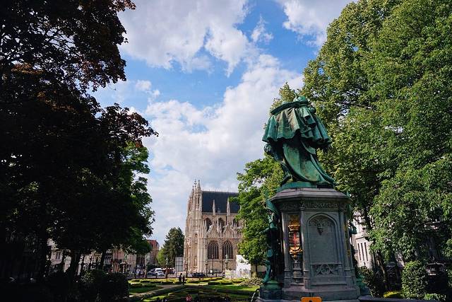 教堂离比利时的皇宫已经特别近了,从教堂后面的坡上去,就是皇宫前面的皇宫花园。除此之外,比利时皇家的婚礼和葬礼都会这里举行。