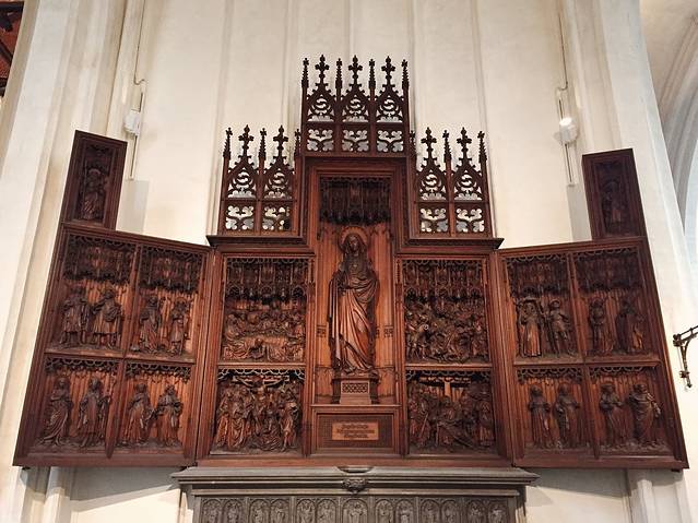 位于大小萨布隆广场之间的,就是萨布隆圣母教堂 (Église Notre-Dame du Sablon)。萨布隆圣母教堂始建于14世纪初,最终建成于1435。