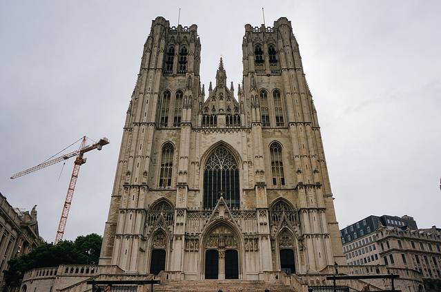 圣米歇尔圣古都勒大教堂的历史始于1047年,并于1226年开始扩建,扩建一直持续了两个半世纪才完成。由于建造时间跨域了2个多世纪,大教堂的建筑风格结合了罗马艺术和歌特式艺术兴盛时期的多种建筑风格。教堂的正立面则保留了歌特式教堂线条笔直、修长的风格。