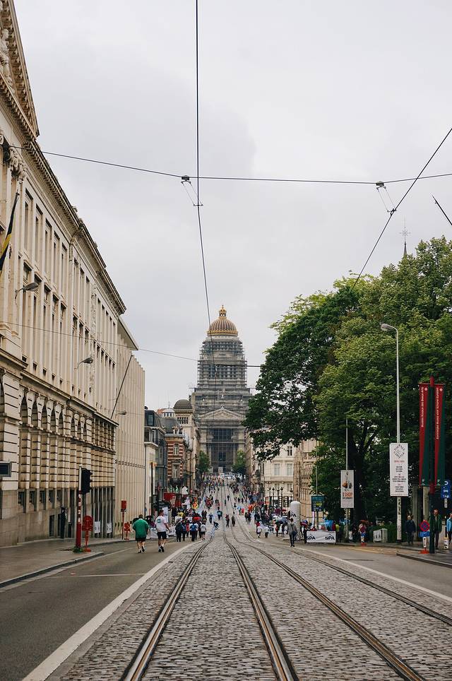 从圣米歇尔圣古都勒大教堂背后继续往坡上走,就可以走到皇宫了。今天正好在布鲁塞尔有一个20公里马拉松赛,正好比赛的路线经过皇宫前面的这条路。