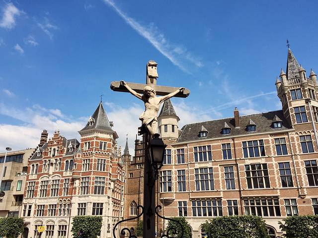 从皇家美术馆往更南边的巨型建筑——司法宫走的话,就能走到著名的萨布隆区 (Sablon)区。来布鲁塞尔的旅游,如果喜欢美食或古董的,一定会在玩大广场之外特地跑来萨布隆区逛一逛。这里有甜点美食巧克力店遍布的大萨布隆 (Grand Sablon)广场、也有雕像公园小萨布隆 (Petit Sablon)广场。